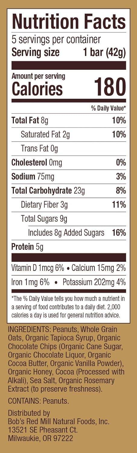 Bob’s Red Mill 5pk PB Honey & Oats Bar, 5 bars (Pack of 1) – Non GMO, Gluten Free, Kosher(Chocolate)