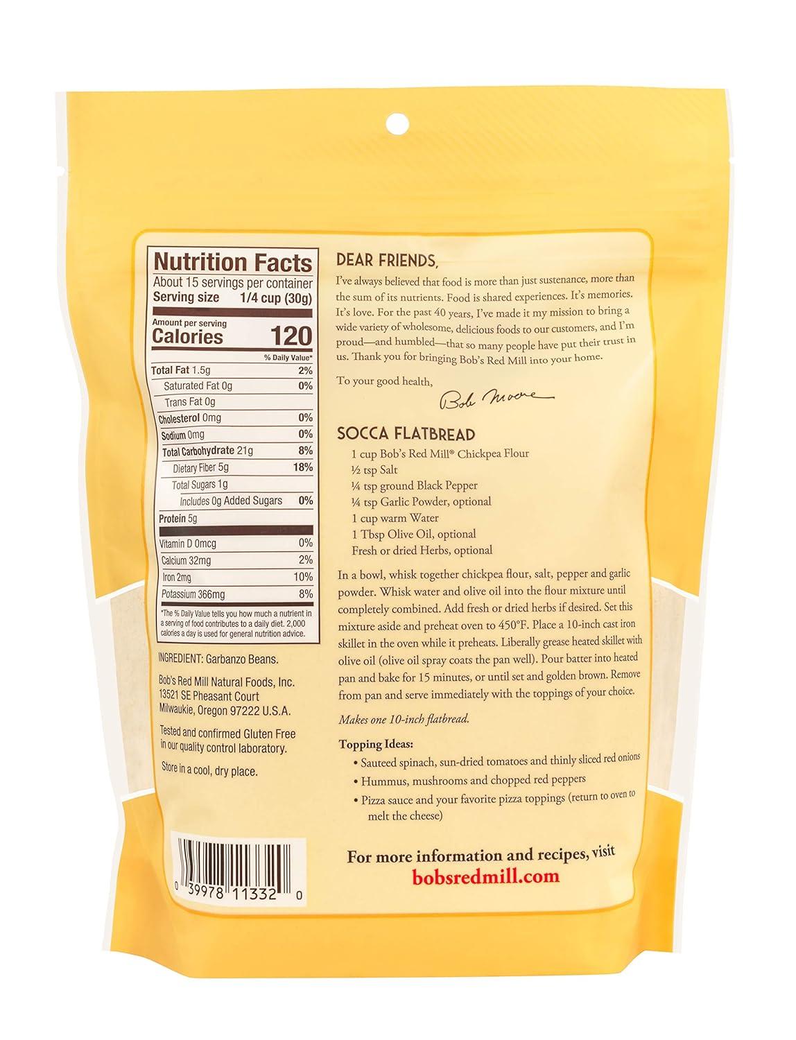 Bob’s Red Mill Chickpea Flour, 16oz (Pack of 4) – Non GMO, Vegan, Keto Friendly Friendly, Kosher(16 Ounce (Pack of 4))