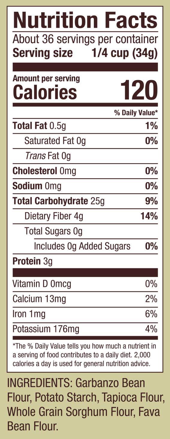 GOOD INGREDIENTS FOR ALL: Made with a unique blend of garbanzo bean flour, potato starch, whole grain sorghum flour, tapioca flour and fava bean flour; delivers excellent texture and flavor in gluten free recipes