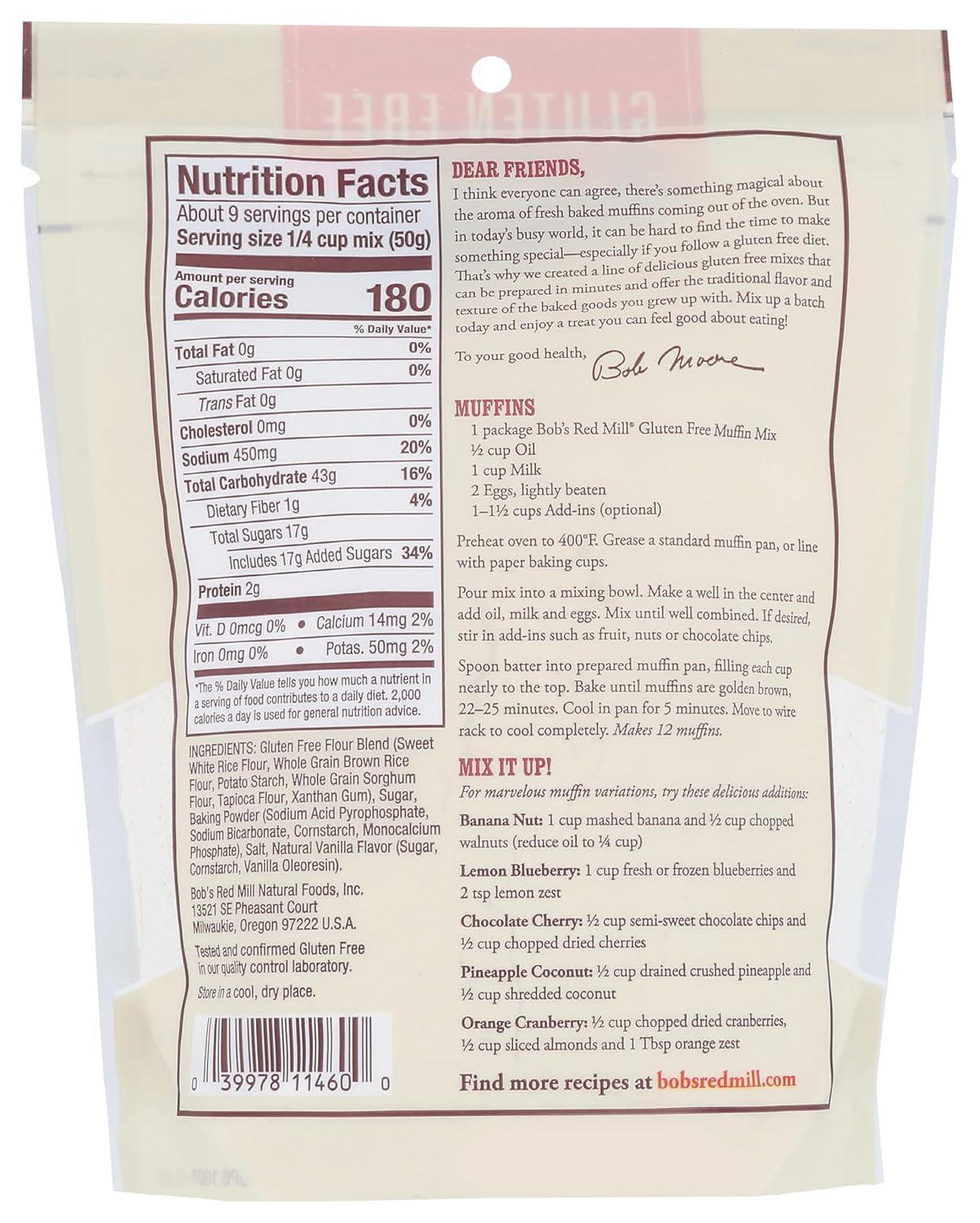 Bob’s Red Mill Gluten Free Muffin Mix, 16oz (Pack of 4) – Gluten Free, Kosher(Corn)