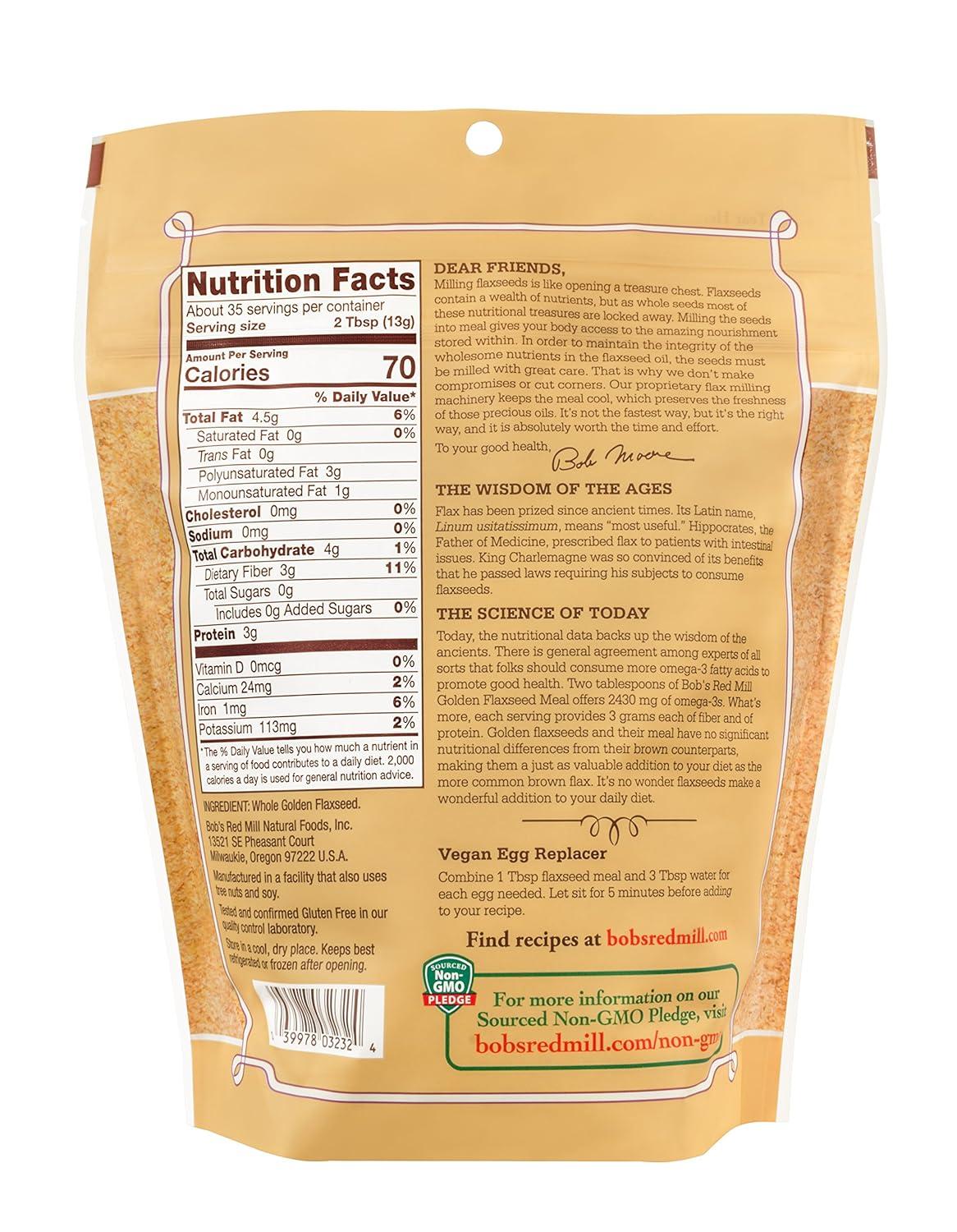 Bob’s Red Mill Golden Flaxseed Meal, 16oz (Pack of 4) – Non GMO, Vegan, Paleo Friendly, Keto Friendly, Kosher(16 Ounce (Pack of 1))