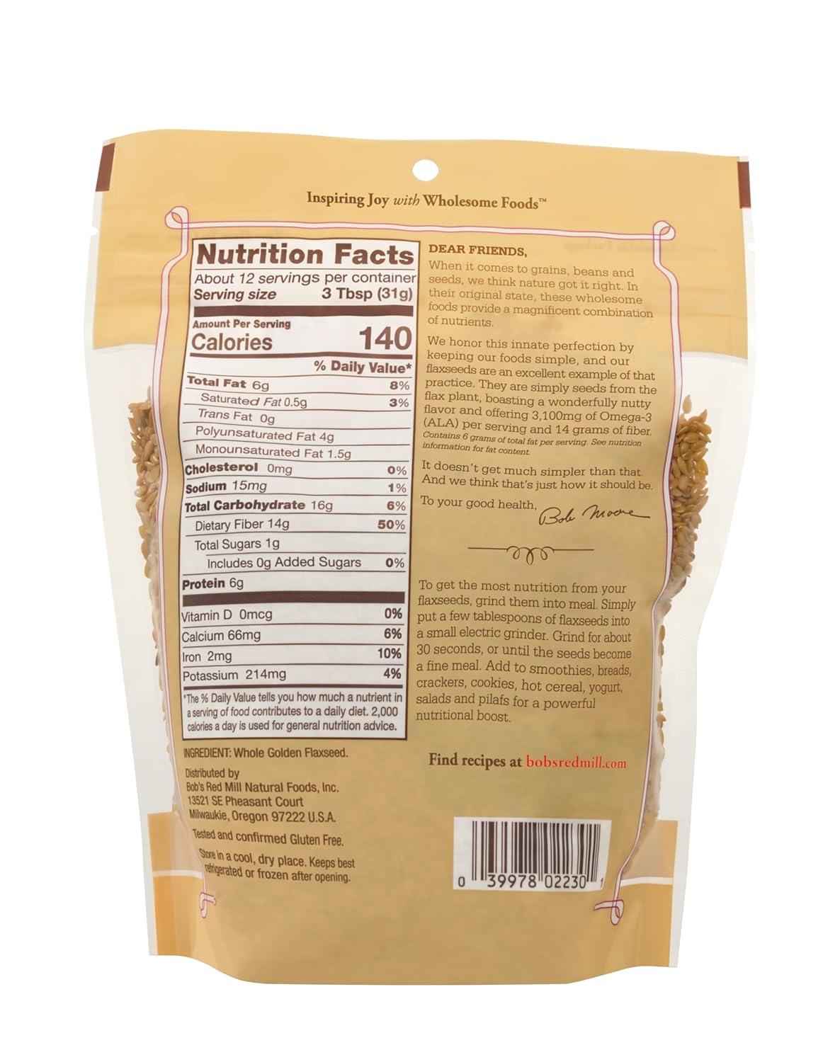 Bob’s Red Mill Golden Flaxseeds, 13oz (Pack of 4) – Non GMO, Vegan, Paleo Friendly, Raw, Sproutable, Kosher