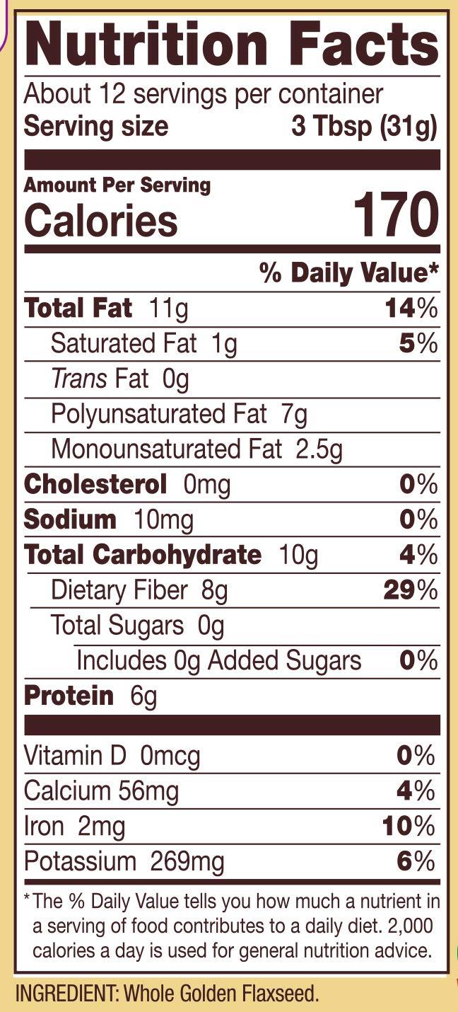Golden flaxseeds are also an excellent source of dietary fiber and a good source of iron