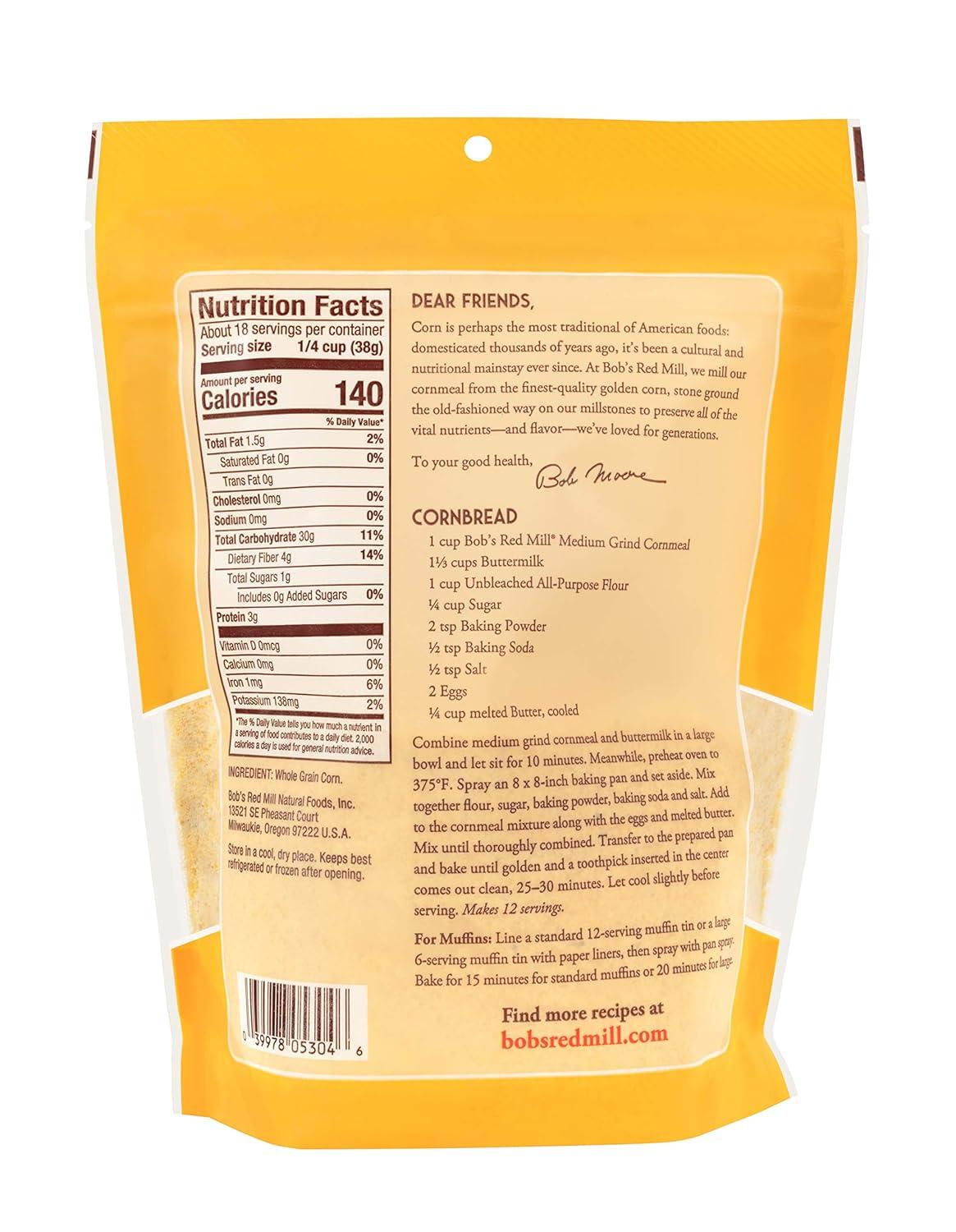 Bob’s Red Mill Medium Grind Cornmeal, 24oz (Pack of 4) – Whole Grain, Vegan, Kosher(96 Ounce (Pack of 1))