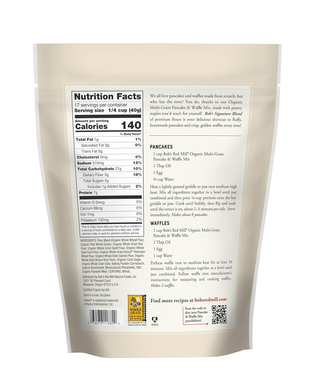 Bob’s Red Mill Organic 7 Grain Pancake & Waffle Mix, 24oz (Pack of 1) – Organic, Whole Grain, Kosher(24 Ounce (Pack of 4))