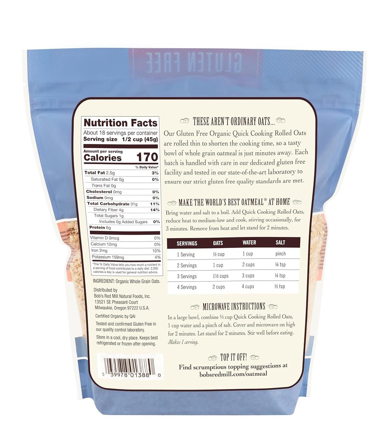 Bob’s Red Mill Quick Cooking Organic Rolled Oats, 28 oz (Pack of 4)(28 Ounce (Pack of 4))