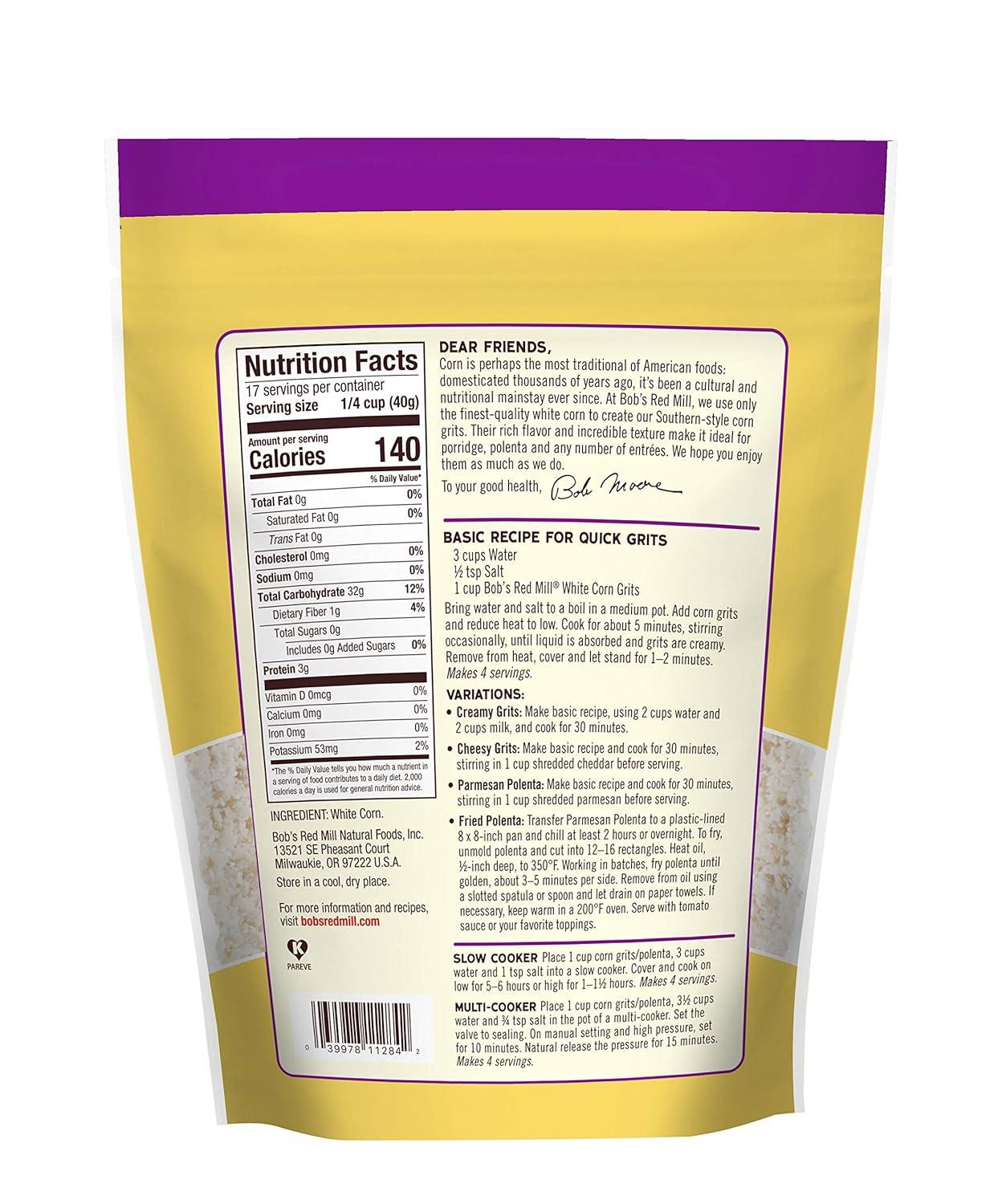 Bob’s Red Mill White Corn Grits, 24oz (Pack of 4) – Vegan, Kosher(96 Ounce (Pack of 1))